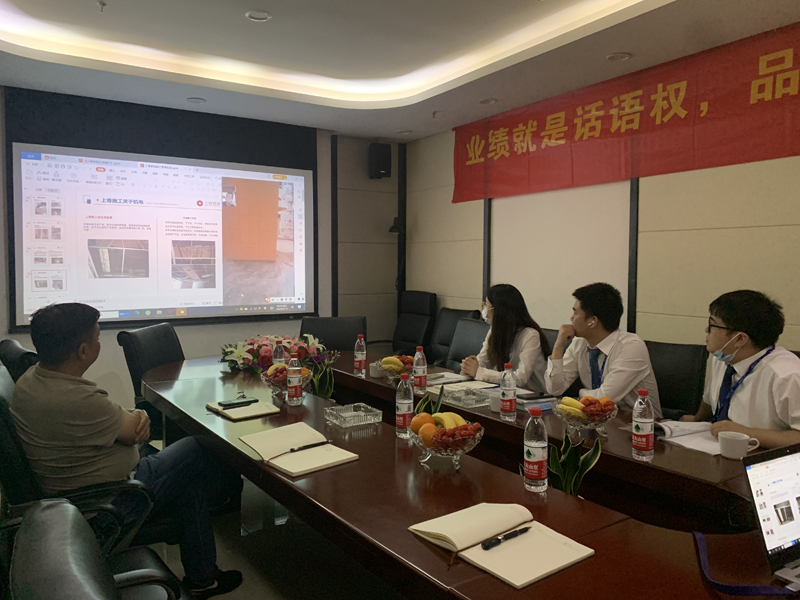 萬達集團考察團達到我公司後(hòu),我公司總經(jīng)理姚總、工程總監謝總、工程部負責人何總負責接待工作。 姚總爲考察團介紹我公司相關榮譽牆内容及公司概況。